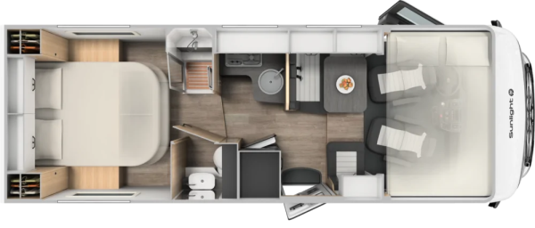 Tempomat, EcoPack Start&Stop inkl. Booster, Klimaanlage Fahrerhaus manuell, Tagfahrlicht im Serienschweinwerfer integriert, Fahrer und Beifahrerairbag, ABS, EBD, ESP, ESC inkl. ASR und Hillholder, Tabletholder und USB-Steckdose, Lederlenkrad und Schaltknauf, Luftauslässe Fahrerhaus Silber, Kühlergrill schwarz glänzend, Radiovorbereitung, Fahrer-/Beifahrersitz in Wohnraumstoff mit Doppelarmlehnen und drehbar, Außenspiegel elektrisch und beheizt, 7 Jahre Dichtigkeitsgarantie, Dach- und Heckaußenhaut aus widerstandsfähigem GFK, 16" Alufelgen, Wohnwelt Adventure, Glattblech Silber, Schwarz matte Adventure Abklebung, Markise schwarz, Fahrradträger 3-fach schwarz, Aufbautür mit Fenster, Rahmenfenster, Design Applikationen Heck , 2te Garagentür, großer Kühlschrank, Kabelvorbereitung Rückfahrkamera, Panoramadachhaube Küche, Klarglasdachhaube 40x40, Duschraumverkleidung, zusätzliche Steckdose in der Küche und in der Garage, Isofix für 2 Plätze, Elektrische Trittstufe, LED-Beleuchtung integriert unter den Dachschränken, Batterie 95 AH, LED-Wohnraumleuchte, LED-Außenleuchte, USB-Steckdose u.v.m.*